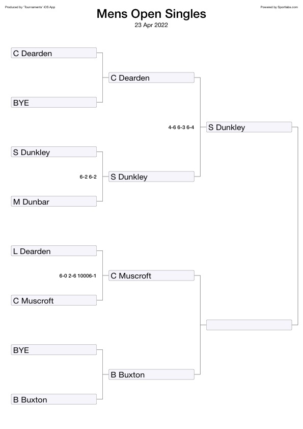 Check out the ‘Mens Open Singles’ draw (produced by ‘Tournaments’ app on iOS)